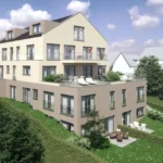 Hierbei handelt es sich um 30 Wohnungen von 2, 3, 4 Zimmerwohnungen nach 55 KFW Standard. Diese Häuser werden nach dem o.g. Standard gebaut und sind durch eine gemeinsame Tiefgarage erschlossen. Wir haben uns zu einem Neubau der Anlage entschlossen um dringend notwendige Wohnräume und ausreichende Stellplätze die komplett oberirdisch in Doppelgaragen angeordnet sind zu schaffen. Der Bestandsbau wird Ordnungsgemäß abgerissen. Der Neubau (Flachdach inkl. Solarthermie) wird in konventioneller Bauart erstellt. Die Außenhülle nach aktueller GEG, Energieeinsparverordnung, alle nichttragenden Innenwände in Gipskarton-Ständerwand.